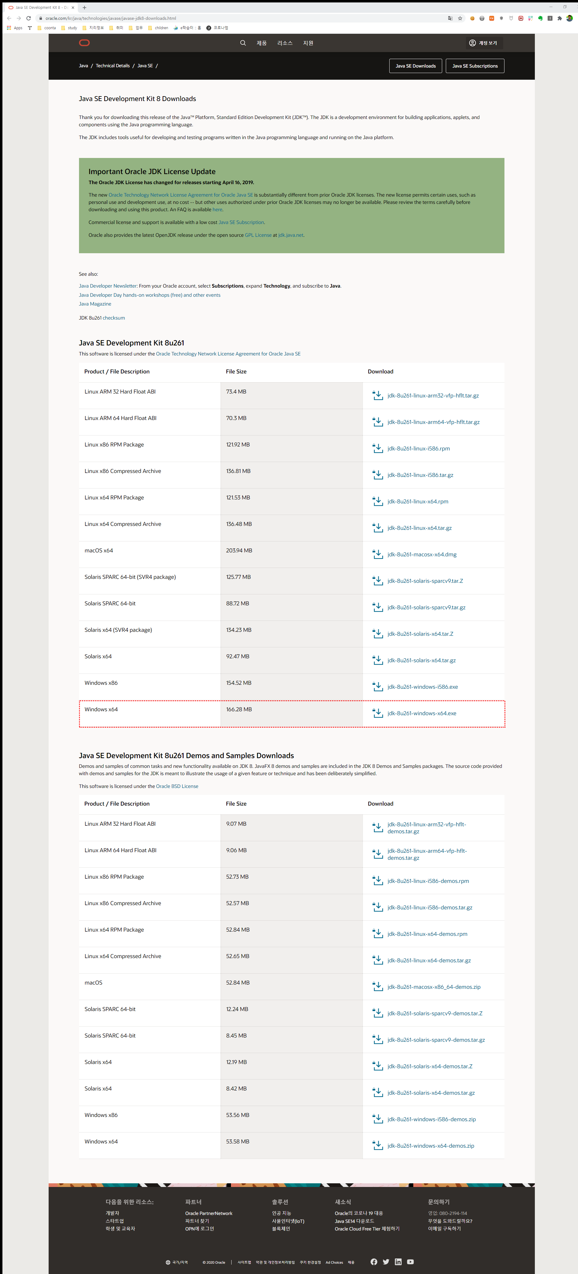 JDK 8 다운로드 Link - https://www.oracle.com/kr/java/technologies/javase/javase-jdk8-downloads.html